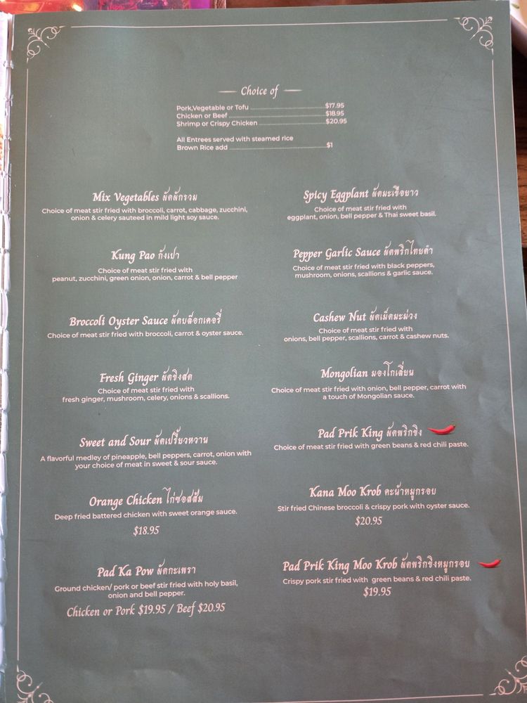 Weera Thai Kitchen - Chinatown Menu